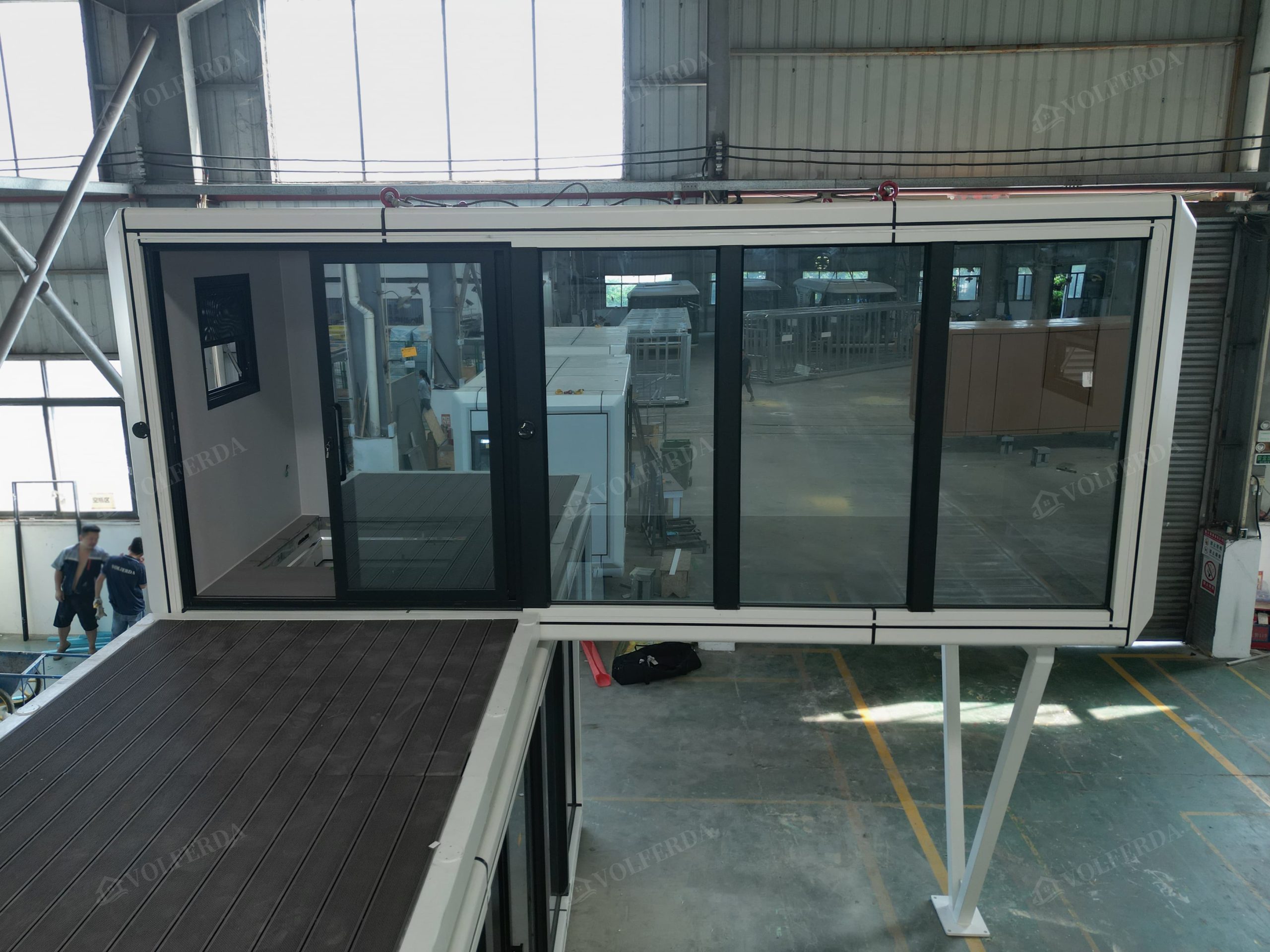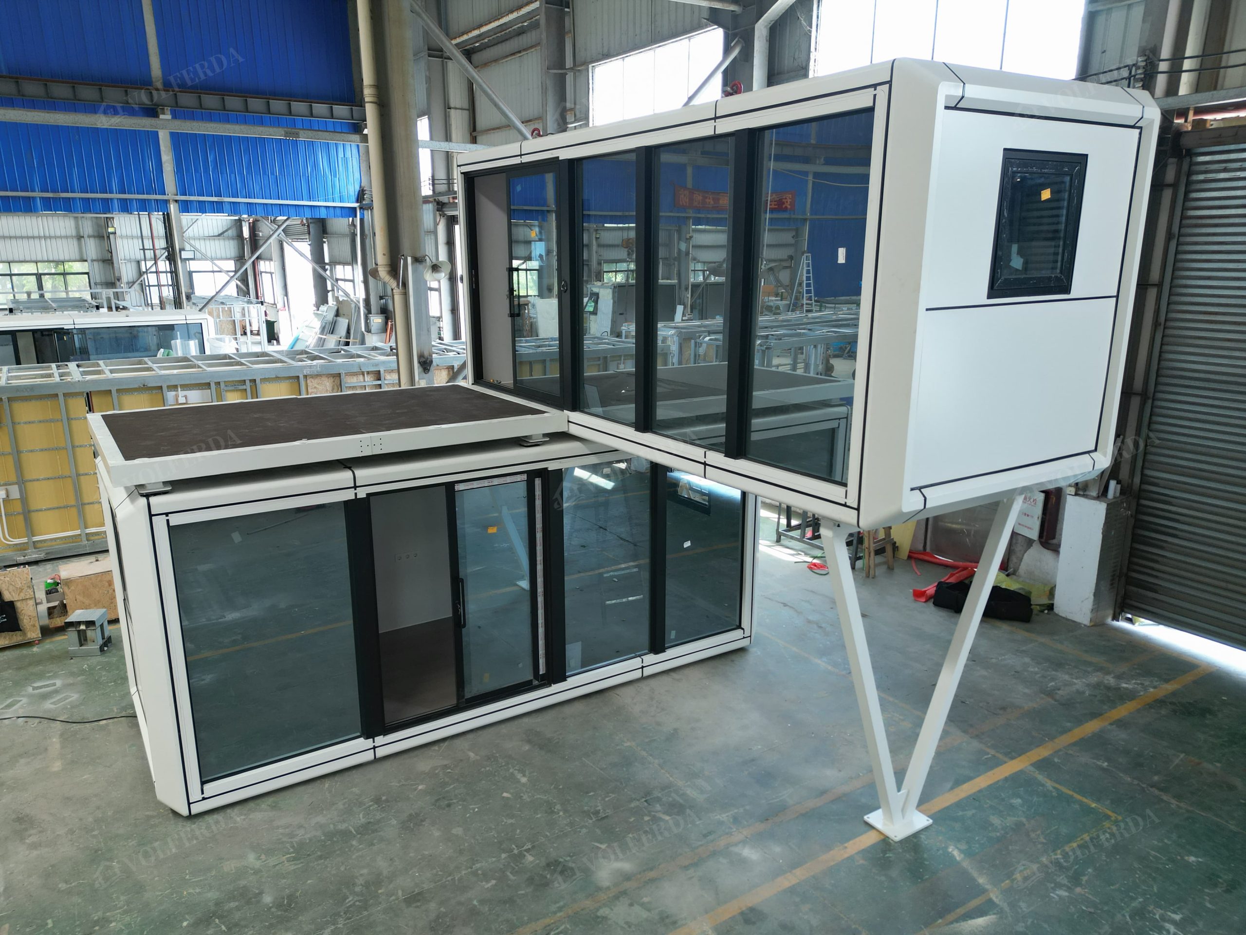 Delivery method: there are two delivery methods for capsule house, the whole house and disassembled modular houses. For the whole house delivery, the house will be shipped in 40flat rack container due to the wide width of the house up to 3.2m, so the shipping costs are relatively high and suitable for only 1-2 houses. For the disassembled modular houses delivery, the house will be shipped in 40 HQ, which saves shipping cost and is suitable for purchasing large quantity of houses.