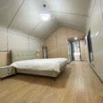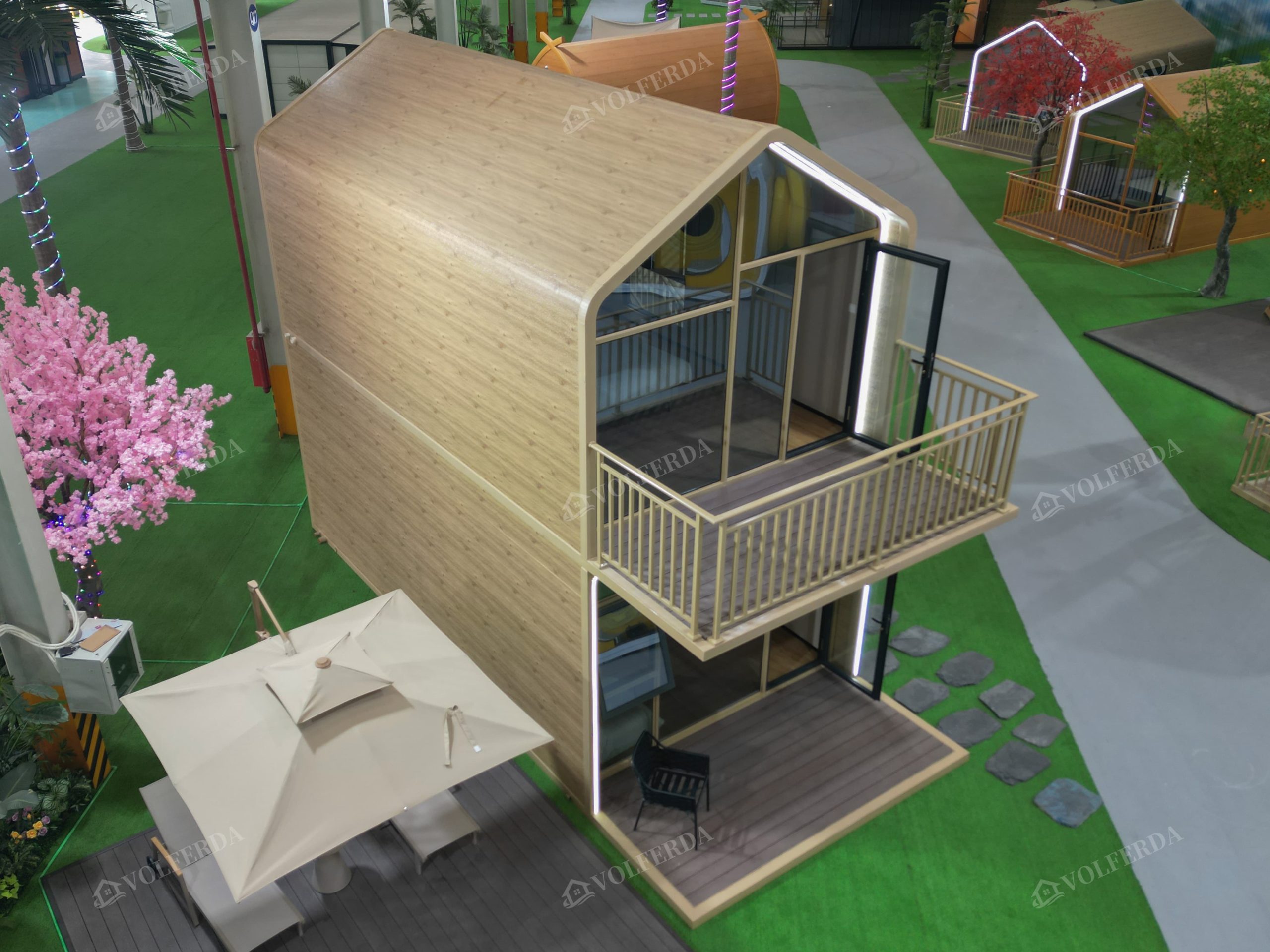 Delivery method: there are two delivery methods for capsule house, the whole house and disassembled modular houses. For the whole house delivery, the house will be shipped in 40flat rack container due to the wide width of the house up to 3.2m, so the shipping costs are relatively high and suitable for only 1-2 houses. For the disassembled modular houses delivery, the house will be shipped in 40 HQ, which saves shipping cost and is suitable for purchasing large quantity of houses.