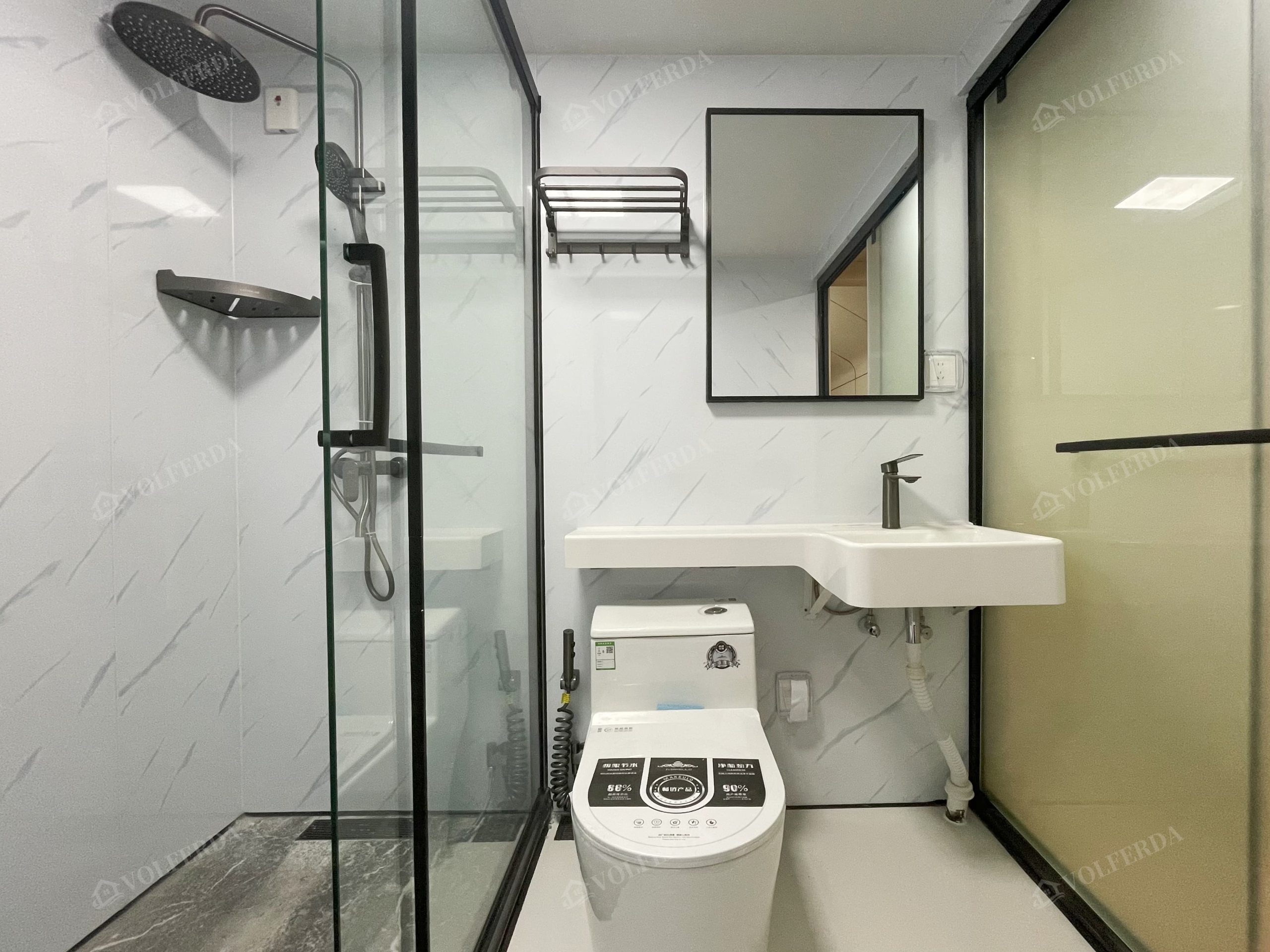 Aluminium exterior panel ceiling & wall, Stone plastic composite floor, Whole house lightning system, Whole house plumbing & electrical system, Entryway cabinet, curtain track (without curtain)